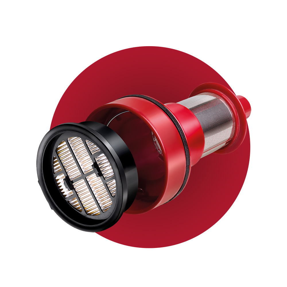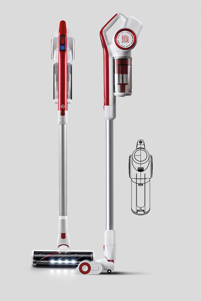 Posee un brazo extensible para evitar malas posturas, rodamientos intercambiables (uno suave para suelos delicados y otro con cerdas para alfombras), y una luz incorporada para detectar pelusas y polvo donde otros aspiradores no llegan. El filtro HEPA mantiene el aire libre de alérgenos y bacterias, mientras que su diseño sin bolsa facilita el vaciado del depósito y lo hace más higiénico.