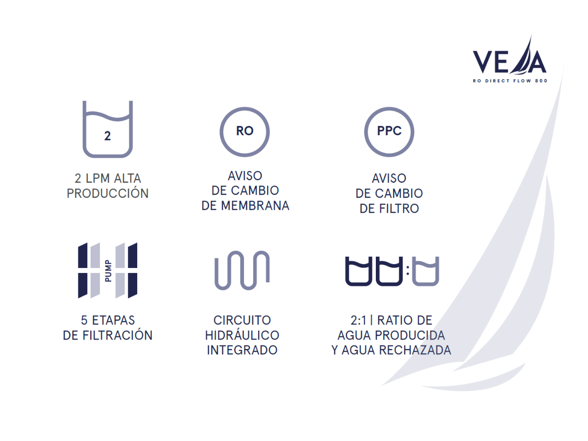 Con un diseño compacto y de alto rendimiento, la Ósmosis Vela 800 GPD Flujo Directo es la solución ideal para hogares y oficinas que demandan un suministro constante de agua de la más alta calidad, combinando tecnología avanzada, eficiencia energética y seguridad en cada uso.