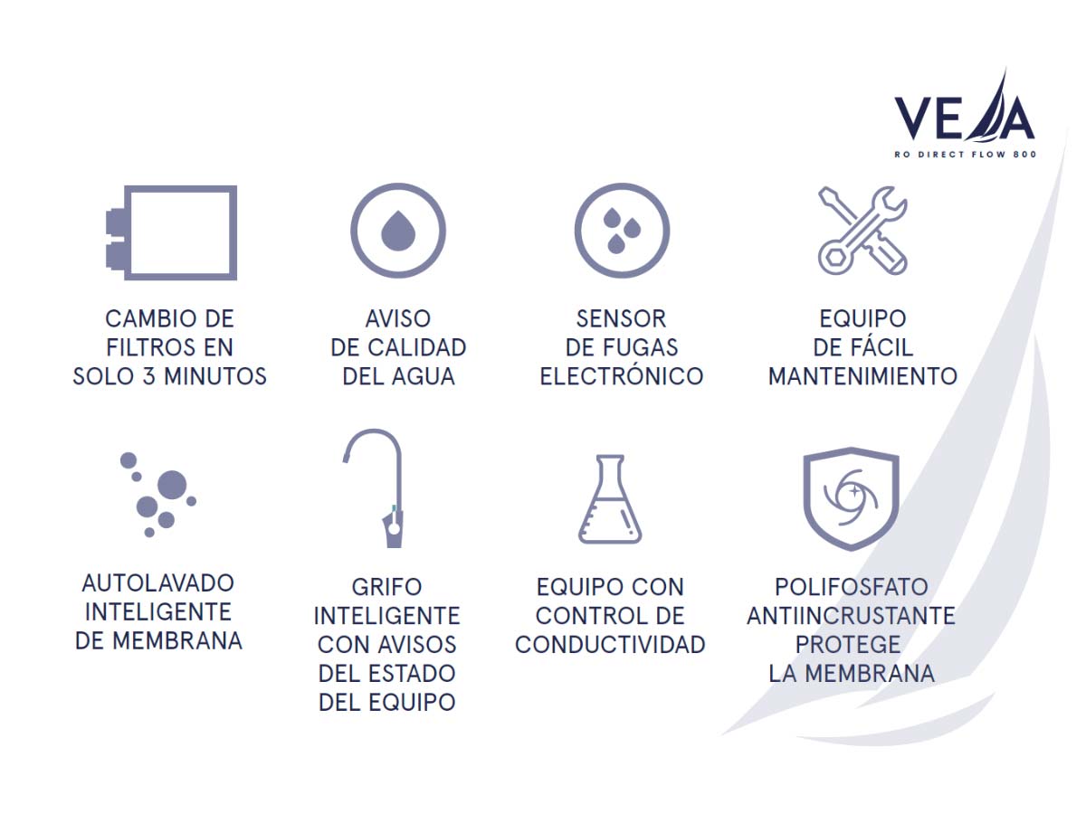 La Ósmosis Vela 800 GPD incorpora múltiples sistemas de protección: