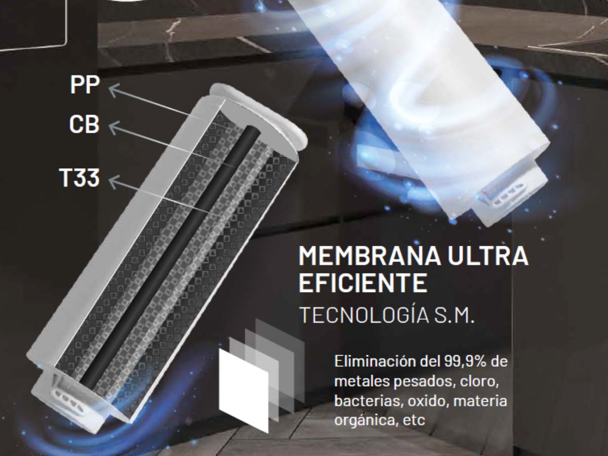 El sistema está diseñado con un bajo rechazo de agua, lo que reduce el desperdicio y contribuye al ahorro y la sostenibilidad.