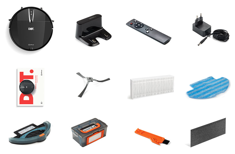 Con accesorios completos (mando, cepillos extra, filtros HEPA y de algodón, paño de fregado y herramientas de limpieza), el Robot Aspirador DOT convierte la limpieza diaria en un acto sencillo, eficaz y automatizado para darle una vuelta total a tu rutina doméstica.
