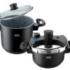 Este set está pensado para adaptarse a todo tipo de cocinas, incluidas las de inducción, ofreciendo una eficiencia energética superior gracias a su fondo difusor que optimiza la transmisión del calor y reduce los tiempos de cocción. De esta forma, no solo se consigue un cocinado más rápido y uniforme, sino que también se ahorra energía en cada preparación.